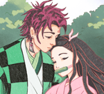 In this painting, I wanted to represent siblings love, and what better example of this kind of love than the Kamado brothers?