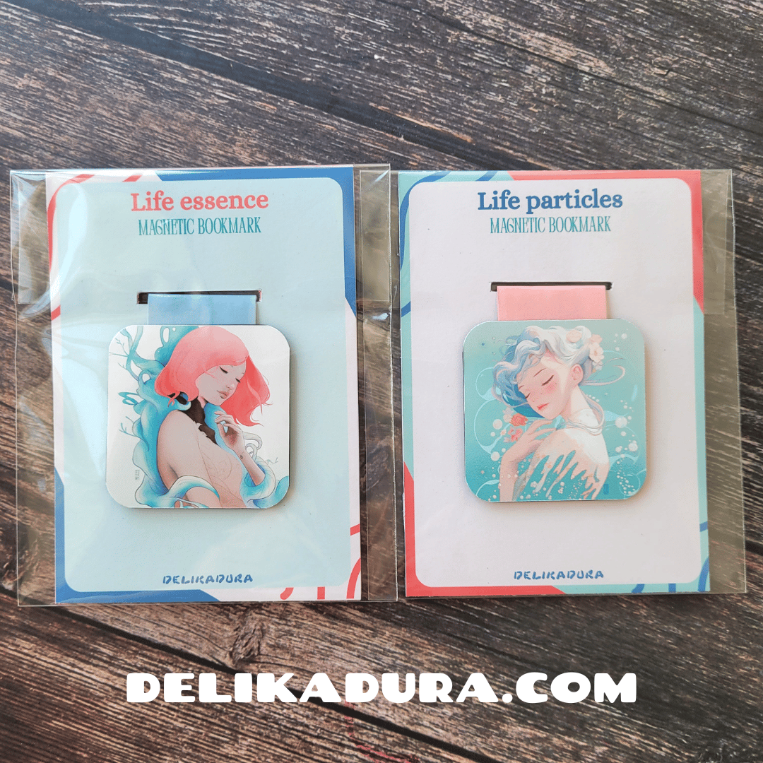 Set of 2 magnetic bookmarks featuring my paintings 'Life essence' and 'Life particles'.