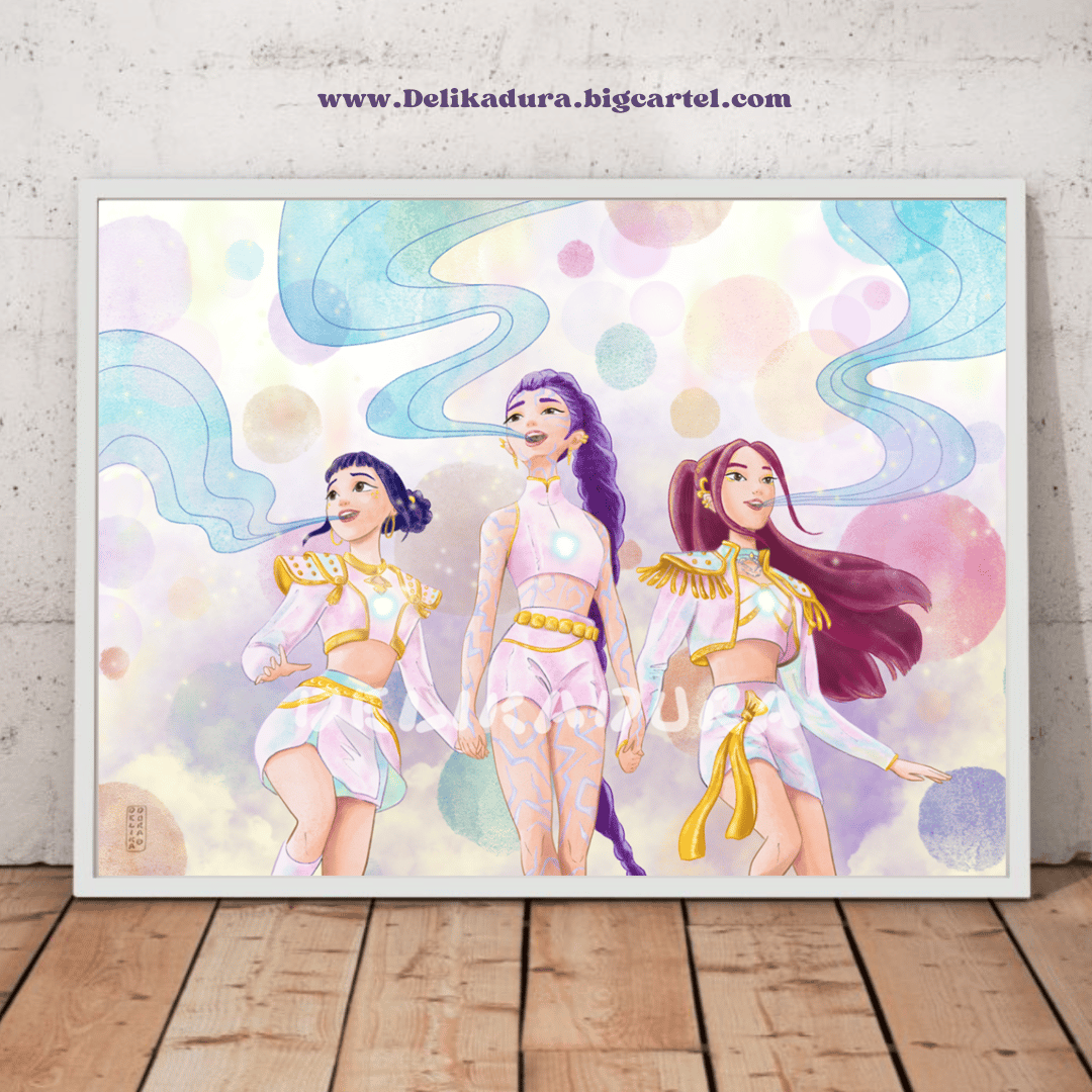 I felt so inspired after watching Kpop Demon Hunters. i loved the animation, the characters, the songs... but specially the magic! In this painting, I tried to do a symbiosis between the magical world in the movie and mine.