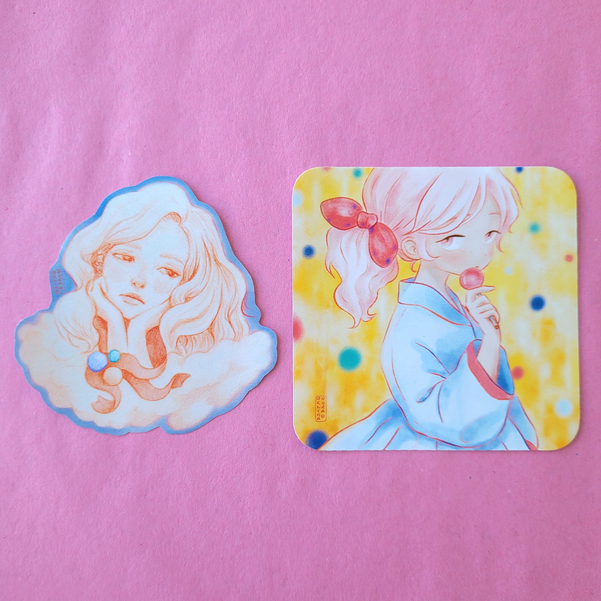 Cut sticker set of my small paintings 'Candy' and 'In the Clouds' .